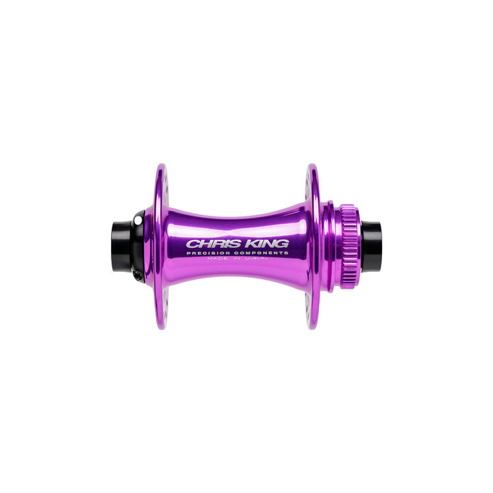 Our Boost Centerlock front hubs use one-piece axles to provide a stiff hub with rail accurate steering. To keep mud and water out of the works they have heavy-duty bearing seals and snaprings that provide superior protection with ultra-low drag. Each one is like a rolling dream of trail riding performance. Our bearings, both steel and ceramic, have heat-treated, surgical grade steel races that are machined simultaneously to ensure perfect matching. The quality and speed of our bearings is what you will feel (and hear) on every ride. As Chris King bearing tracks burnish they get actually get faster. A little bit of regular love (i.e. service) will keep this hub rolling for years upon years of demanding use.