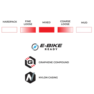 多功能中央與中段胎紋,加上高性能過彎齒塊,確保在多變地形中的自信操控。