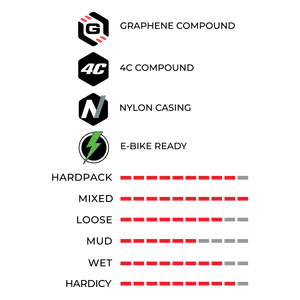 Abrasion and puncture resistant double ply nylon casing engineered for enduro and shuttle laps.